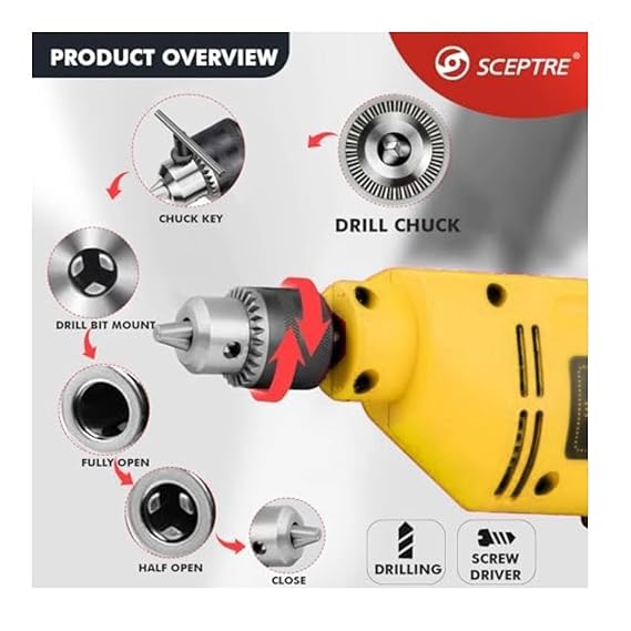 400W Electric Hammer Drill Machine | 10mm Chuck, 3200 RPM, Variable Speed, Reversible Function | 220V Corded Drill for Wood, Metal, Masonry | Home DIY Power Tool (YELLOW)