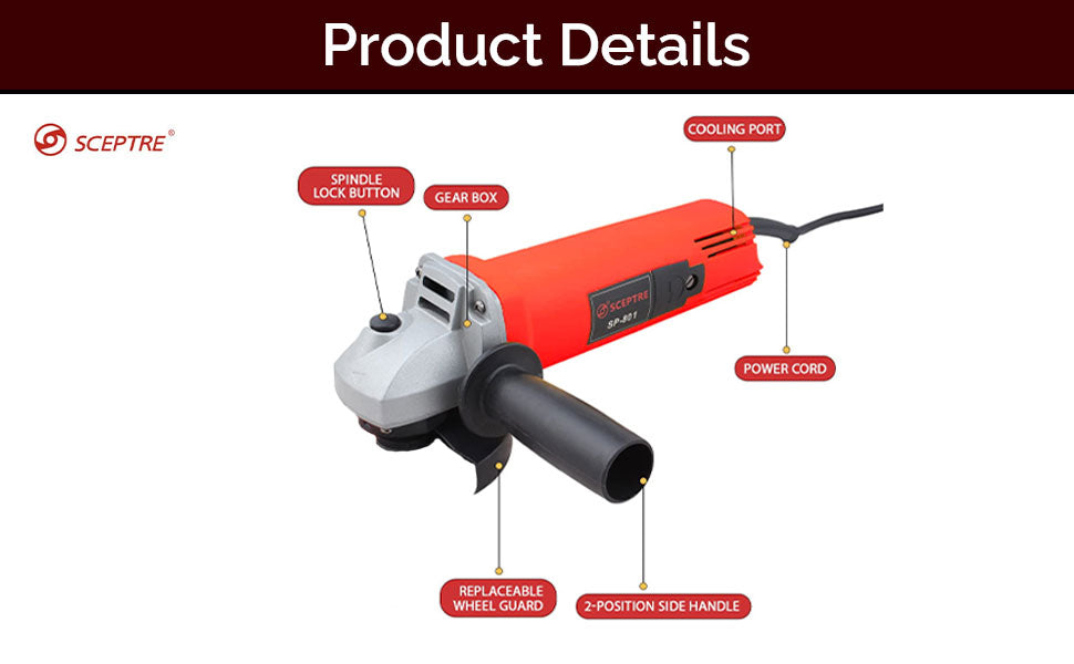 The 4-inch angle grinder has a compact and ergonomic design, allowing for easy handling and maneuverability in tight spaces. The inclusion of a side handle enhances control and stability during operation, ensuring user comfort.