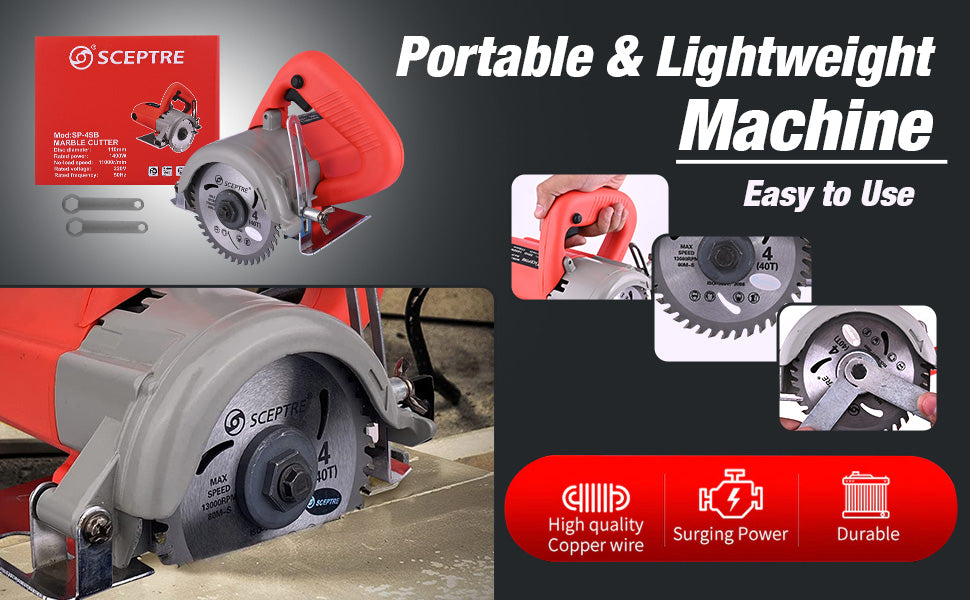 SCEPTRE SP-4SB 4 Inch Marble Cutter Machine (Red) - 1400 W